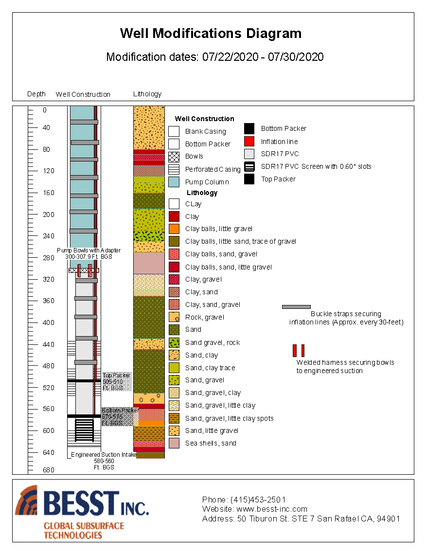 Following the successful completion of installing the packer and modification system into the well, various tests are performed to exact data on optimized pumping rates in the modified well to meet a balance of well efficiency, water quality, production potential, and pumping sustainability. This information is recorded over a regimented period to provide valuable insight into permanent modification construction and future well designs.